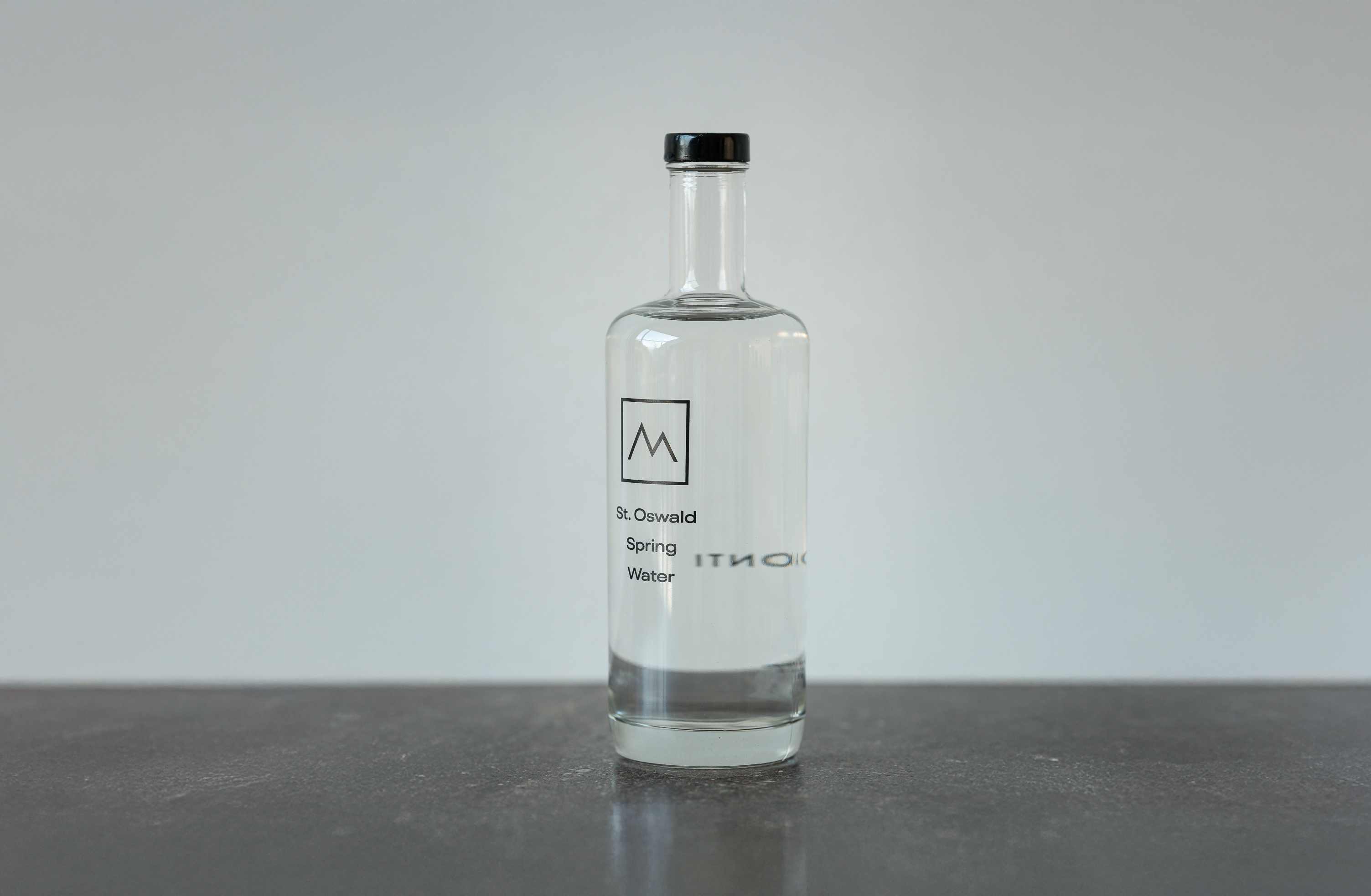 Personalisierte und wiederverwendbare MIRAMONTI Wasserflasche aus Glas.