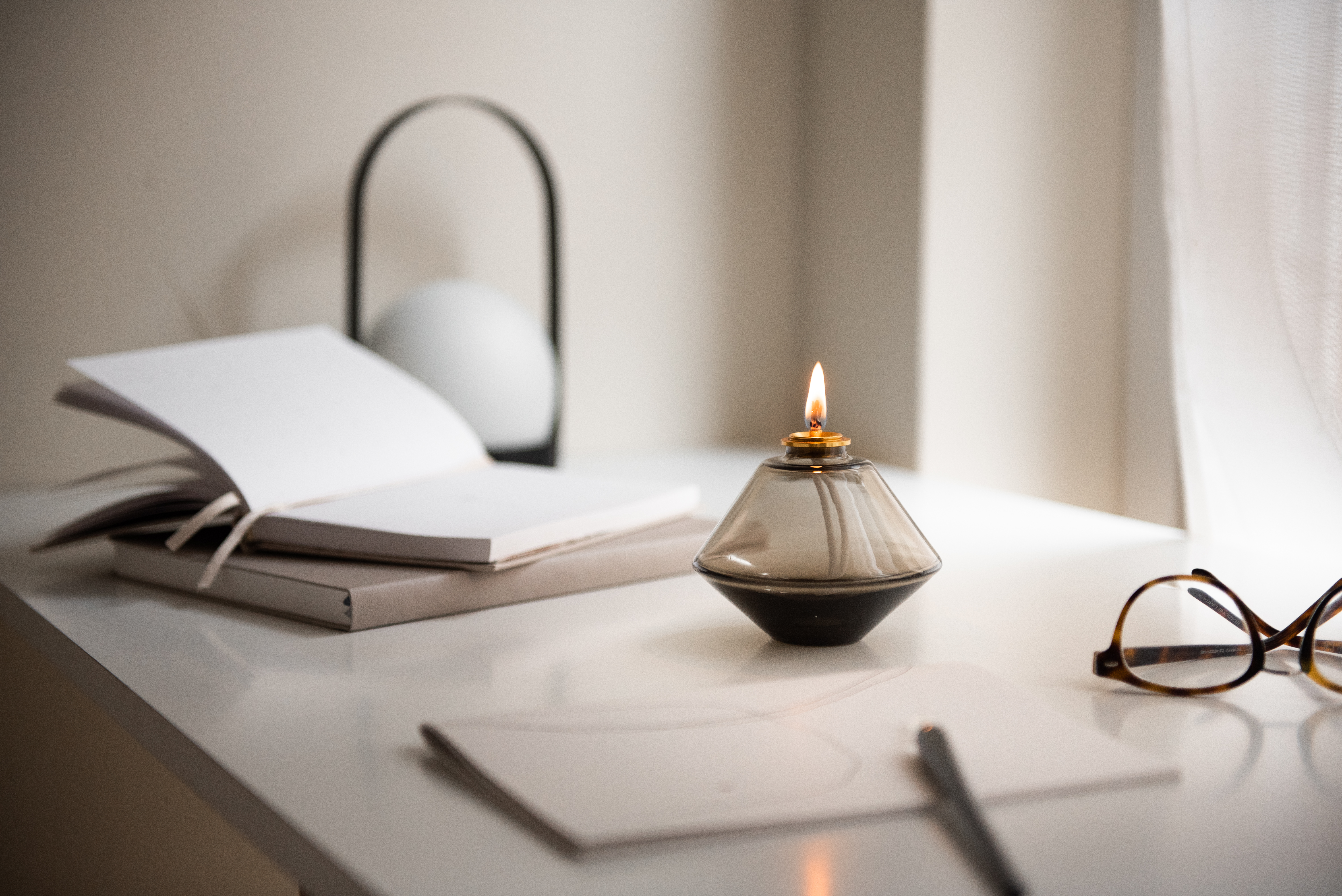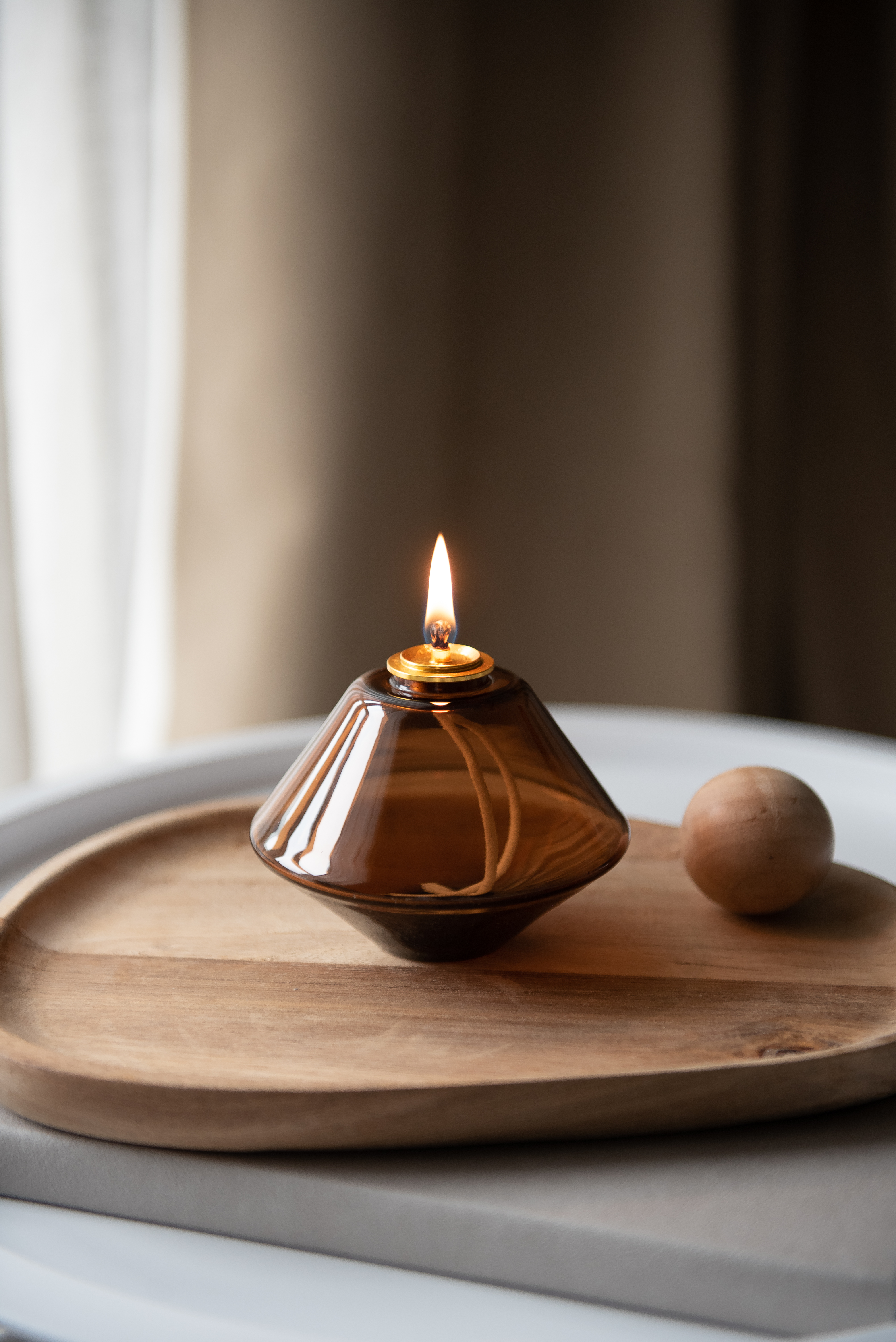 The AKI Starter Set is a handcrafted glass oil lamp designed to create a warm, calming atmosphere. Easy to use and refill, it offers up to 25 hours of soft, steady light – perfect for mindful moments and a modern ritual at home.