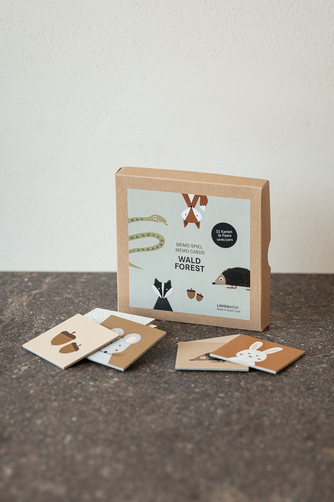 Where has the fox been hiding? The new memo game ‘WALD FOREST’ is a classic game for young and old. All the motifs come from our forest (fox, deer, wild strawberries, hare, bee, etc.). The game contains 32 cards (16 pairs of cards). The memory game is produced in South Tyrol and packaged by hand. Cards: 6 x 6 cm - mounted on cardboard - plastic-free Age: at own discretion.